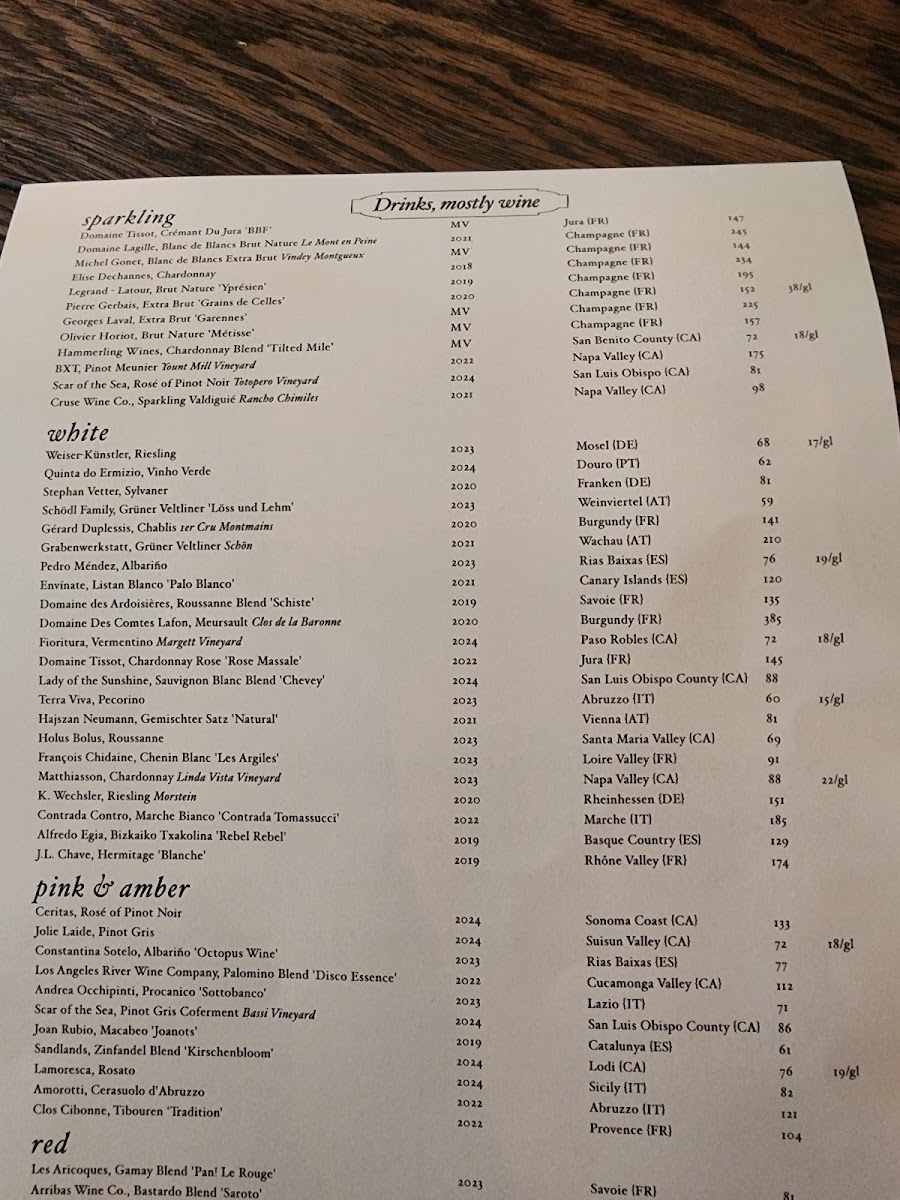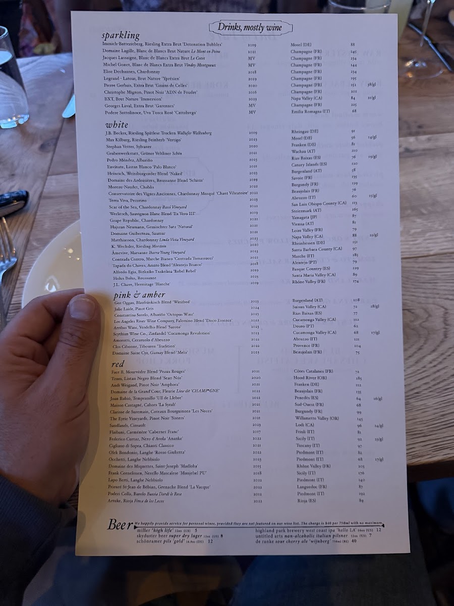 The menu is structured to support a full dining experience, suitable for lunch or dinner, with dishes that range from light starters to hearty main courses and desserts. The variety of preparations, including raw, smoked, wood-roasted, and slow-cooked items, allow guests to select from a broad palette of tastes and textures.
