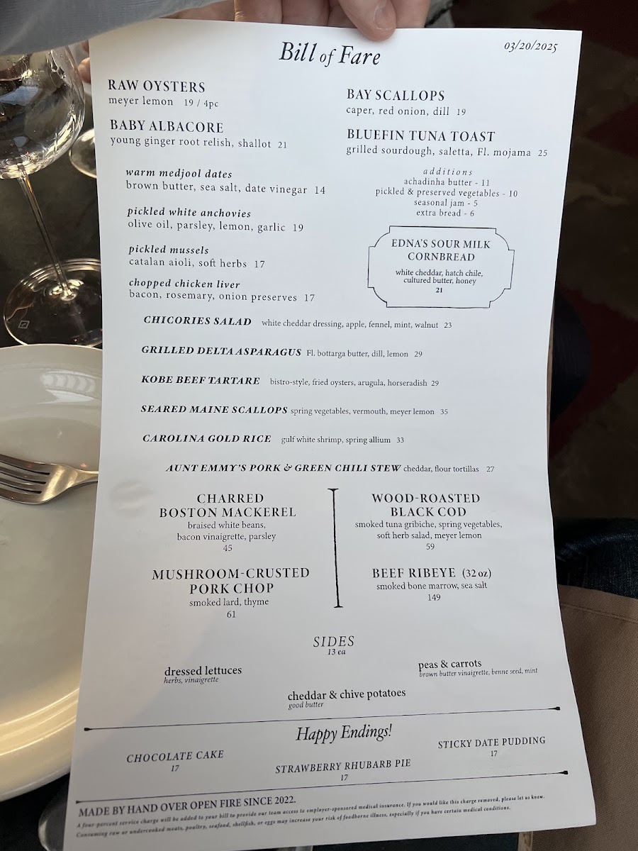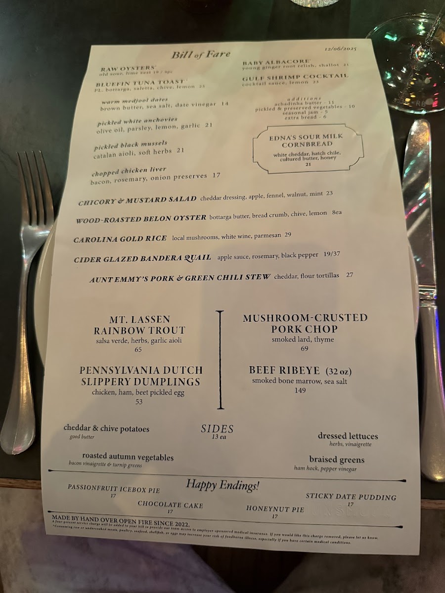 Bill of Fare